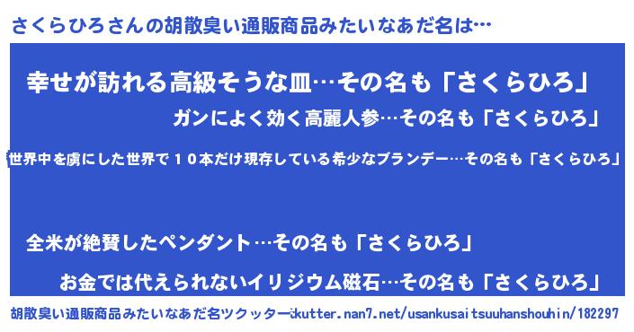 | 女子向けラノベタイトル風あだ名 | 『乙女ゲームの破滅フラグしかない悪役さくらひろに転生してしまった…』 |