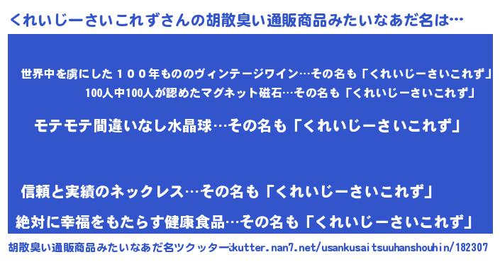 | 恥ずかしいあだ名 | 『プリティーくれいじーさいこれず』 |