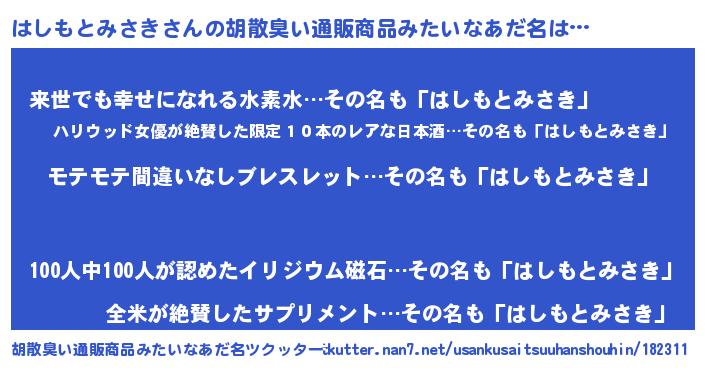 | ヘコむあだ名 | 『はしふぇ~』『はしもとみさき(苦笑)』 |