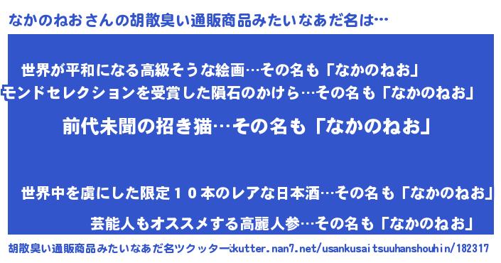 | 意味不明あだ名 | 『永久保存なかのねお』『自称なかのねお』 |