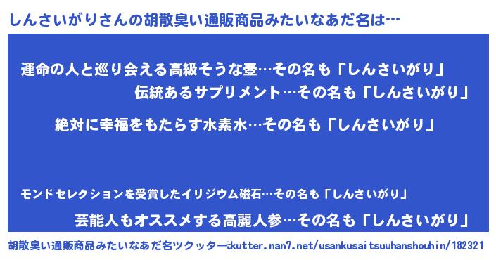 | 意味不明あだ名 | 『永久保存しんさいがり』 |
