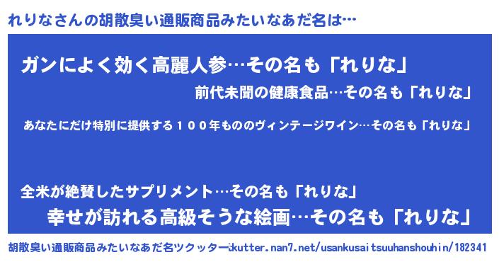 | 意味不明あだ名 | 『住所不定無職れりな(5歳)』『自称れりな』 |
