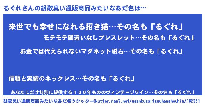 るぐれさんの胡散臭い通販商品みたいなあだ名をツクッター!