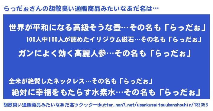 | ヘコむあだ名 | 『つくし』『らっだぉ(苦笑)』 |