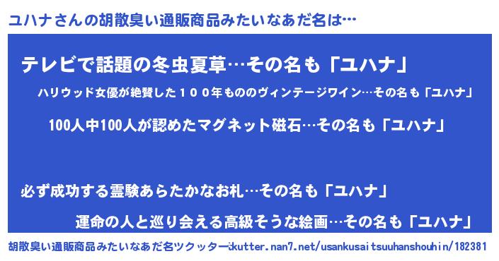 | ヘコむあだ名 | 『つくし』『ユハもー』『ユハっ子』 |
