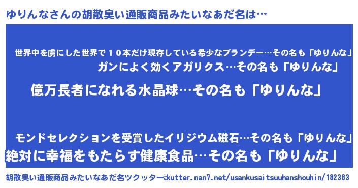 | 恥ずかしいあだ名 | 『プリティーゆりんな』『ゆりちん』 |