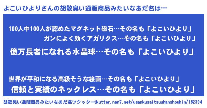 | ヒーロー風カッコイイあだ名 | 『スーパーヨコイヒヨリ』『暗黒騎士ヨコ』 |