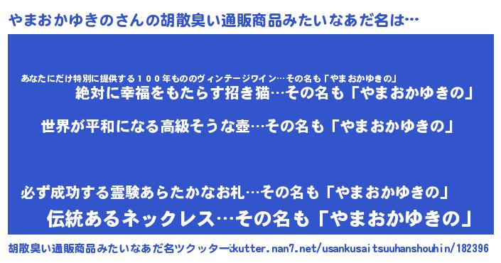 | 男性向けラノベタイトル風あだ名 | 『転生したらやまおかゆきのだった件』 |