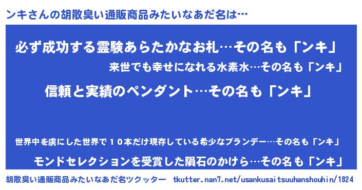 | 男性向けラノベタイトル風あだ名 | 『ンキスレイヤー』『緋弾のンキ』 |