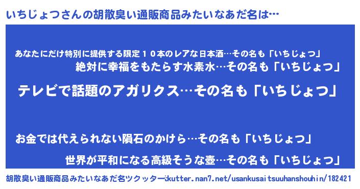 | 意味不明あだ名 | 『自称いちじょつ』『永久保存いちじょつ』 |
