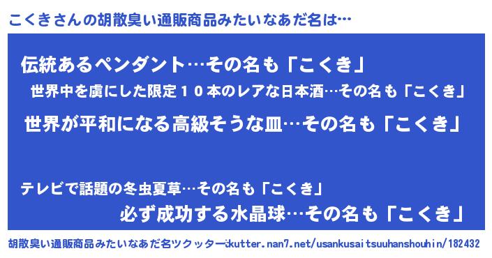 | 意味不明あだ名 | 『こくきフォーエバー』『ペロリンこくき』 |