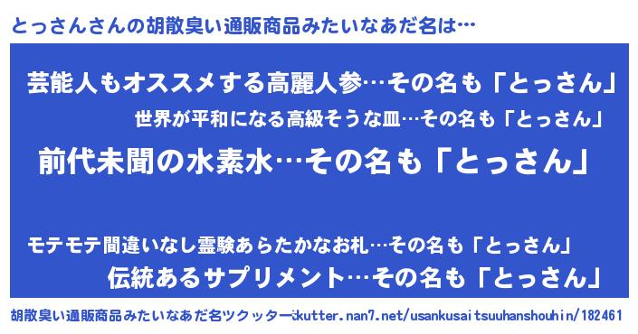 | 意味不明あだ名 | 『ニラ科とっさん属』『永久保存とっさん』 |