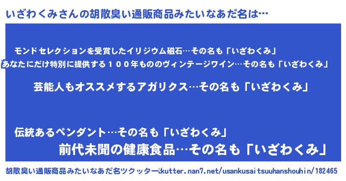 | ヘコむあだ名 | 『いざわくみ(笑)』『いざお』 |