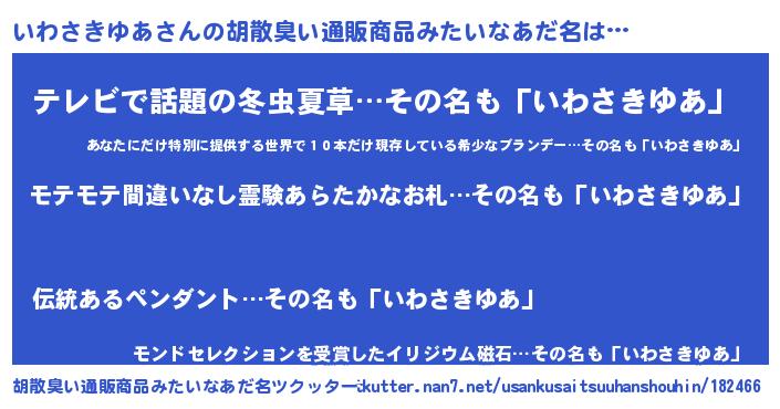 | 恥ずかしいあだ名 | 『プリティーいわさきゆあ』『いわっちょ』 |