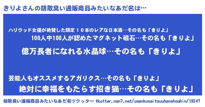 | ヘコむあだ名 | 『きりふぇ~』『きりよ(小並感)』 |