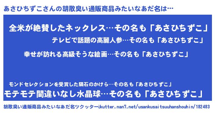 | 意味不明あだ名 | 『あさひちずこフォーエバー』 |