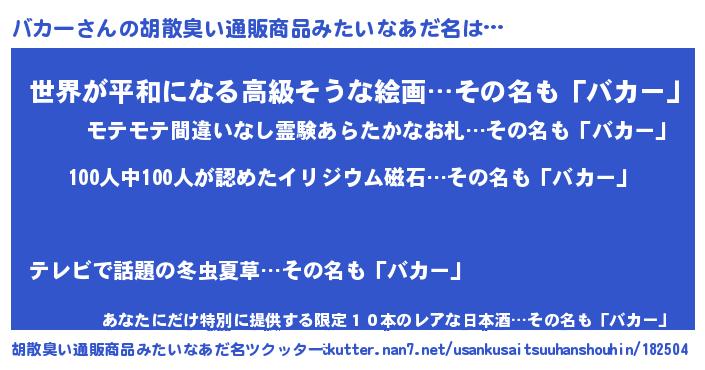 バカーさんの胡散臭い通販商品みたいなあだ名をツクッター!