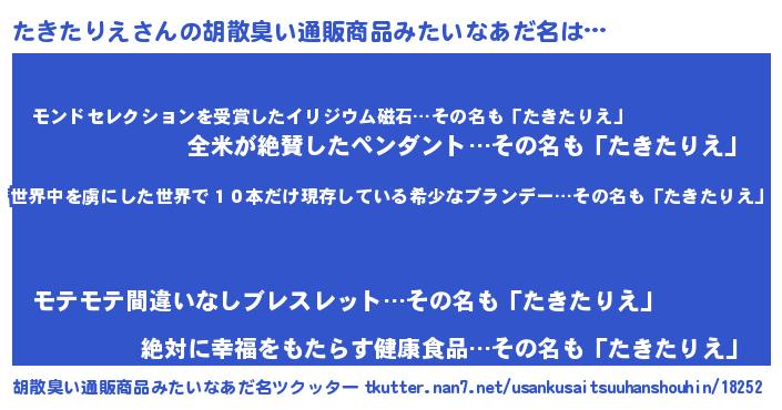 | ヘコむあだ名 | 『たきたりえ(遠い目)』『たきっ子』 |