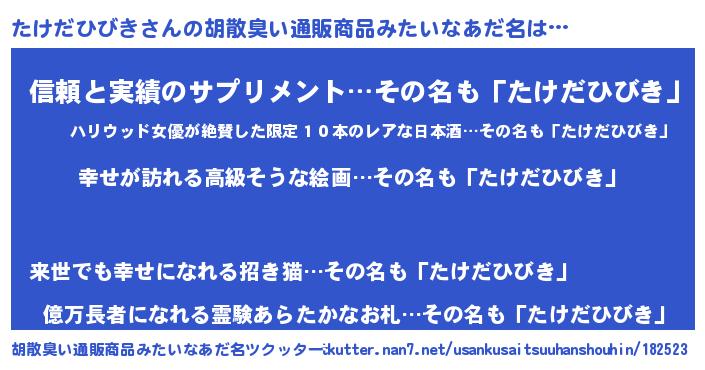 | 意味不明あだ名 | 『たけだひびきフォーエバー』 |