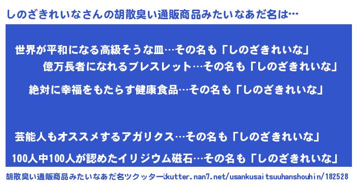 | ヘコむあだ名 | 『しのざきれいな(笑)』『豆乳』 |