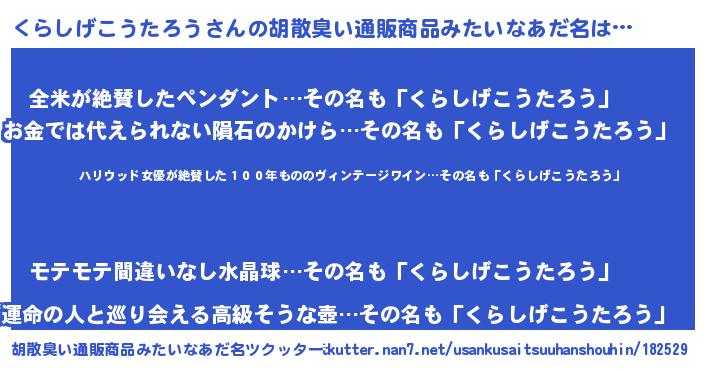 | 意味不明あだ名 | 『住所不定無職くらしげこうたろう(11歳)』 |