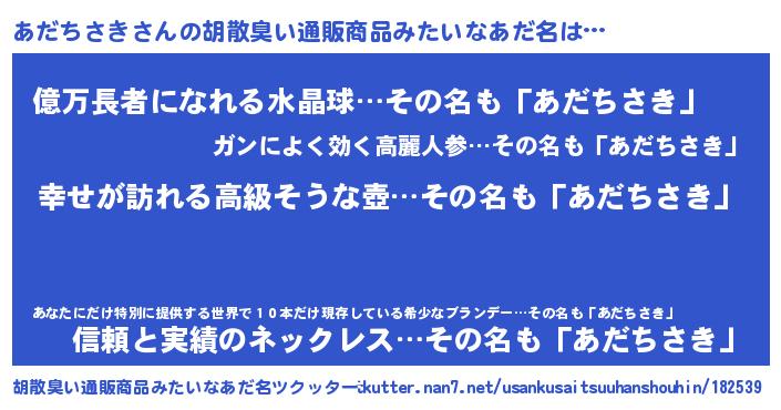 | 女子向けラノベタイトル風あだ名 | 『あだちさきの雑貨屋さん』 |