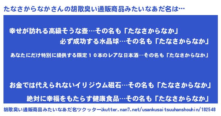 | 意味不明あだ名 | 『住所不定無職たなさからなか(65歳)』 |