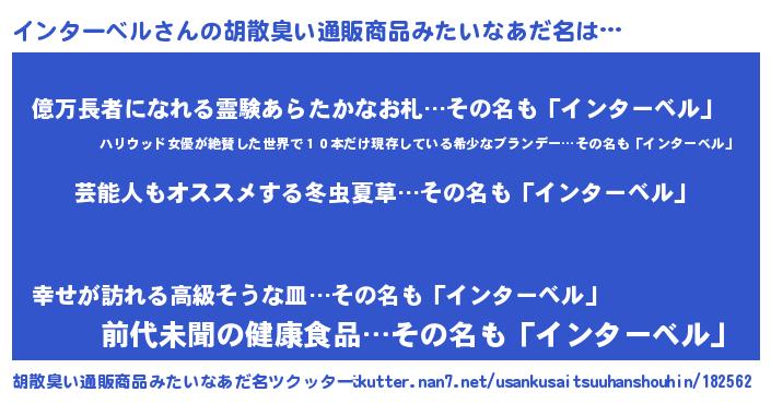 | ヘコむあだ名 | 『インっふぃ~』『インターベル(遠い目)』 |