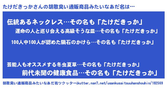 | 意味不明あだ名 | 『眠気覚ましガムたけだきっか味』 |