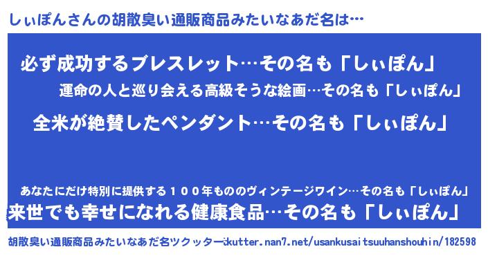 | 意味不明あだ名 | 『とにかく怪しいしぃぽん』 |
