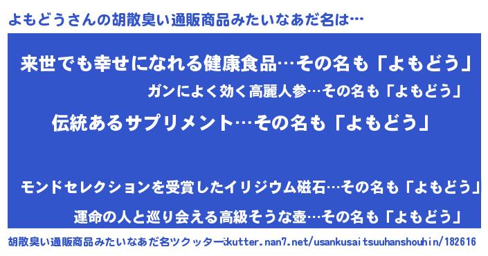 | 意味不明あだ名 | 『とにかく怪しいよもどう』 |