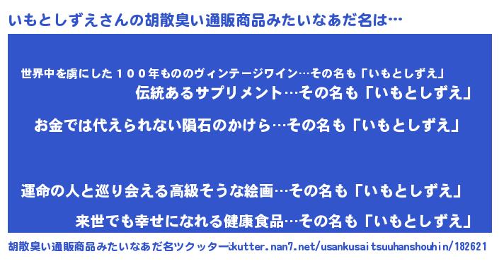 | 意味不明あだ名 | 『眠気覚ましガムいもとしずえ味』 |