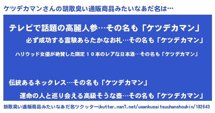 | ヒーロー風カッコイイあだ名 | 『仮面ケツダー』『スーパーケツデカマン』 |