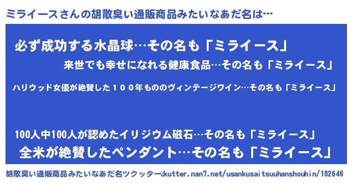 | 意味不明あだ名 | 『住所不定無職ミライース(5歳)』 |