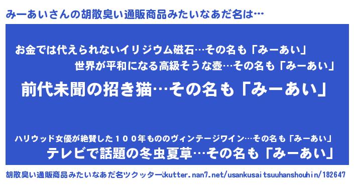 | 意味不明あだ名 | 『永久保存みーあい』『自称みーあい』 |
