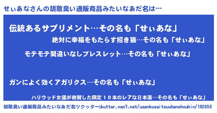 | 意味不明あだ名 | 『ペロリンせぃあな』『永久保存せぃあな』 |