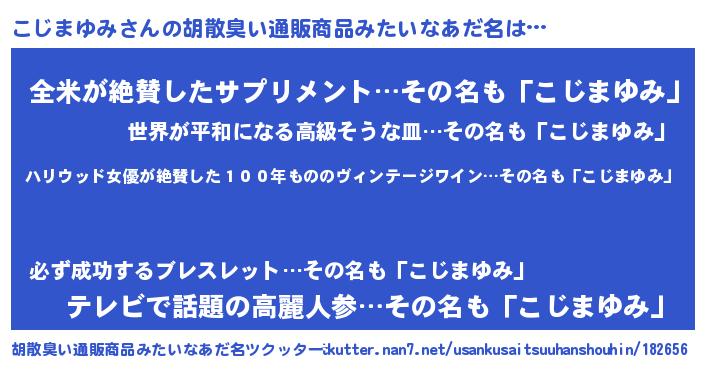 | 恥ずかしいあだ名 | 『コジリンリン』『コジマユミデラックス』 |
