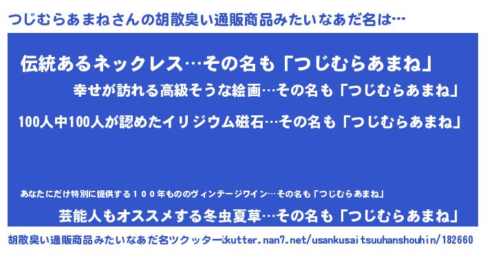 | 男性向けラノベタイトル風あだ名 | 『おまえをオタクにしてやるから、俺をつじむらあまねにしてくれ! 』 |