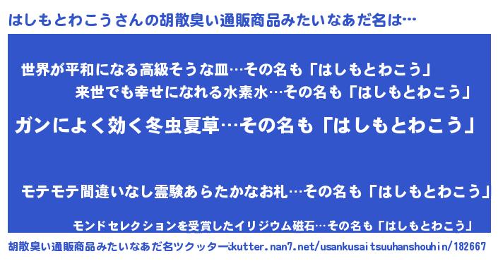 | 欧米人風あだ名 | 『はしもとわこう・ステッグマイヤー』 |