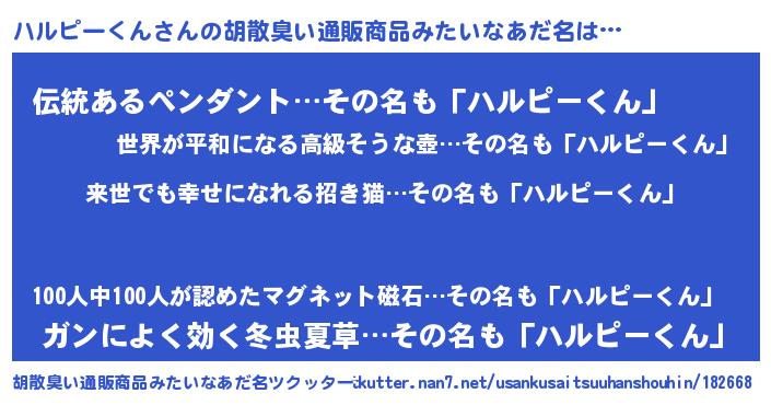 | 意味不明あだ名 | 『永久保存ハルピーくん』 |