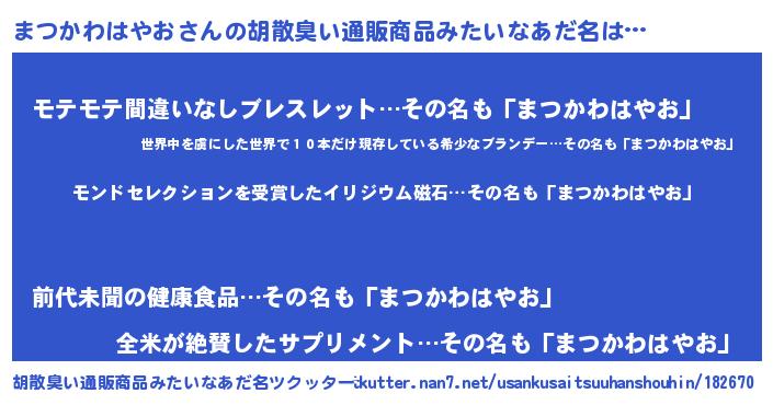 | 意味不明あだ名 | 『眠気覚ましガムまつかわはやお味』 |