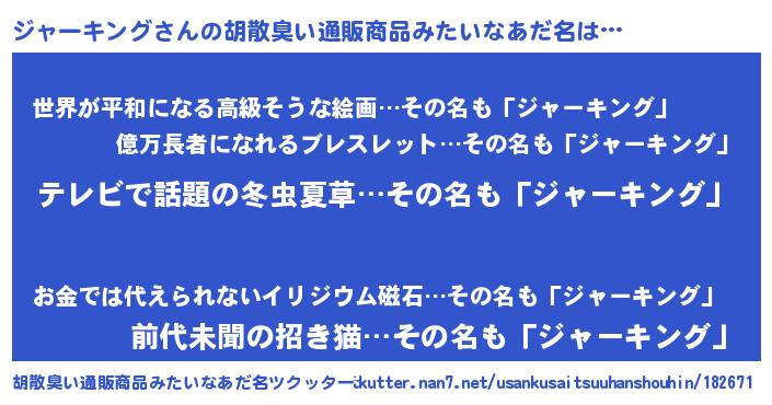 | 意味不明あだ名 | 『自称ジャーキング』 |