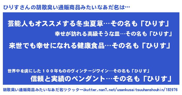 | ヘコむあだ名 | 『ひりす(笑)』『ひりっちょ』 |