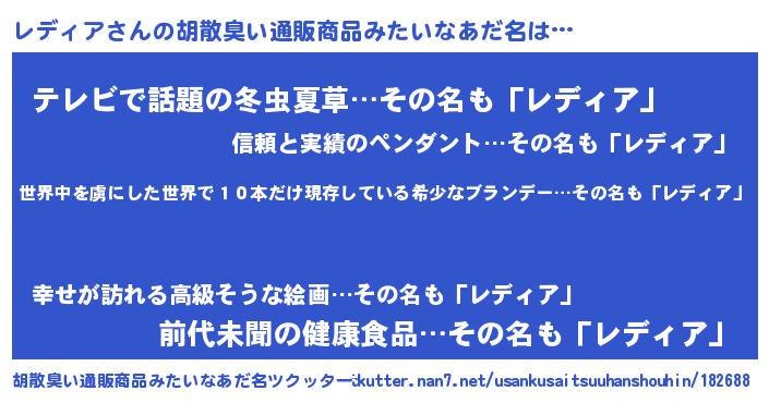 | ヘコむあだ名 | 『レディア(遠い目)』『レデぷりん』 |
