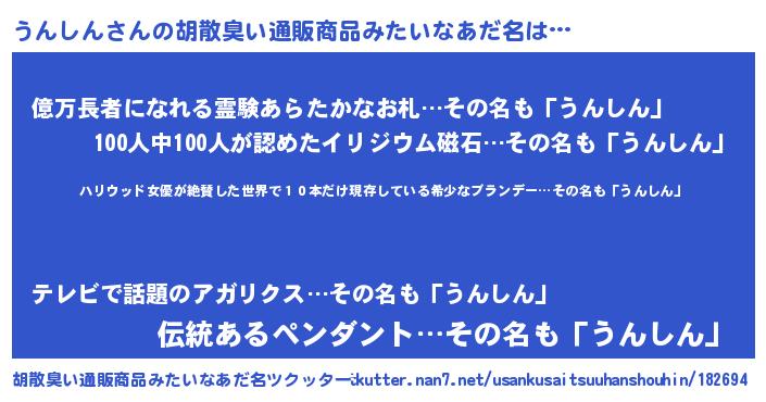 | 意味不明あだ名 | 『住所不定無職うんしん(93歳)』 |