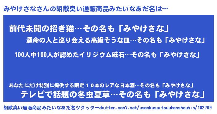 | ヒーロー風カッコイイあだ名 | 『正義の使者みやけさな』『仮面ミヤダー』 |