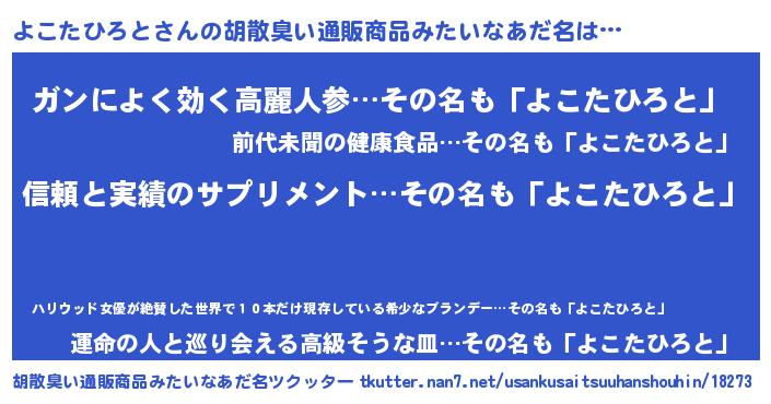 よこたひろとさんの胡散臭い通販商品みたいなあだ名をツクッター!