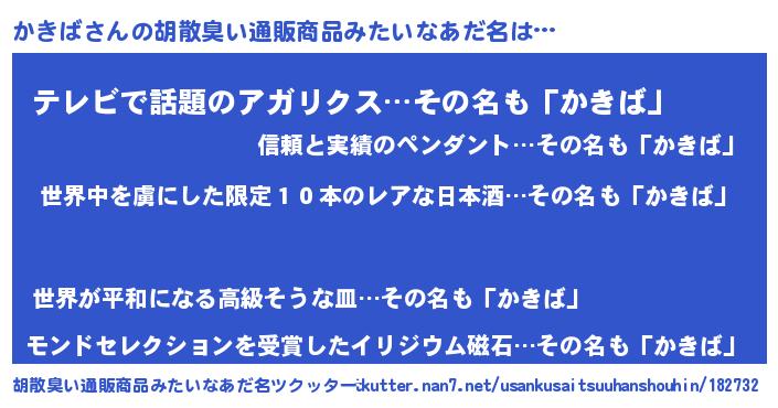 | 意味不明あだ名 | 『住所不定無職かきば(65歳)』『自称かきば』 |