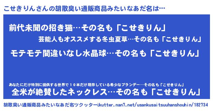 | ヘコむあだ名 | 『こせにゅー』『こせきりん(震え声)』 |