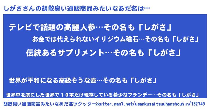 しがささんの胡散臭い通販商品みたいなあだ名をツクッター!